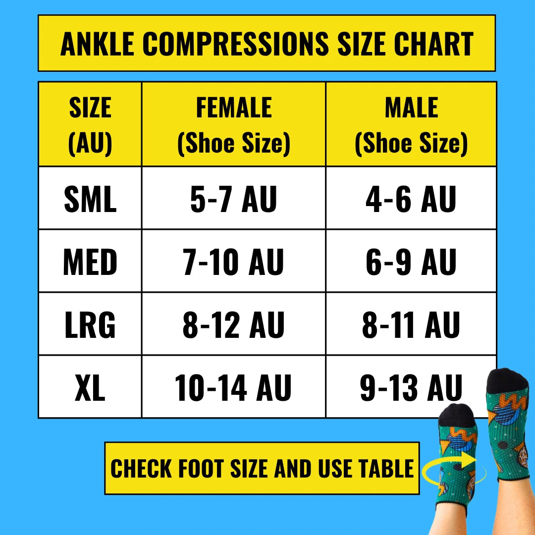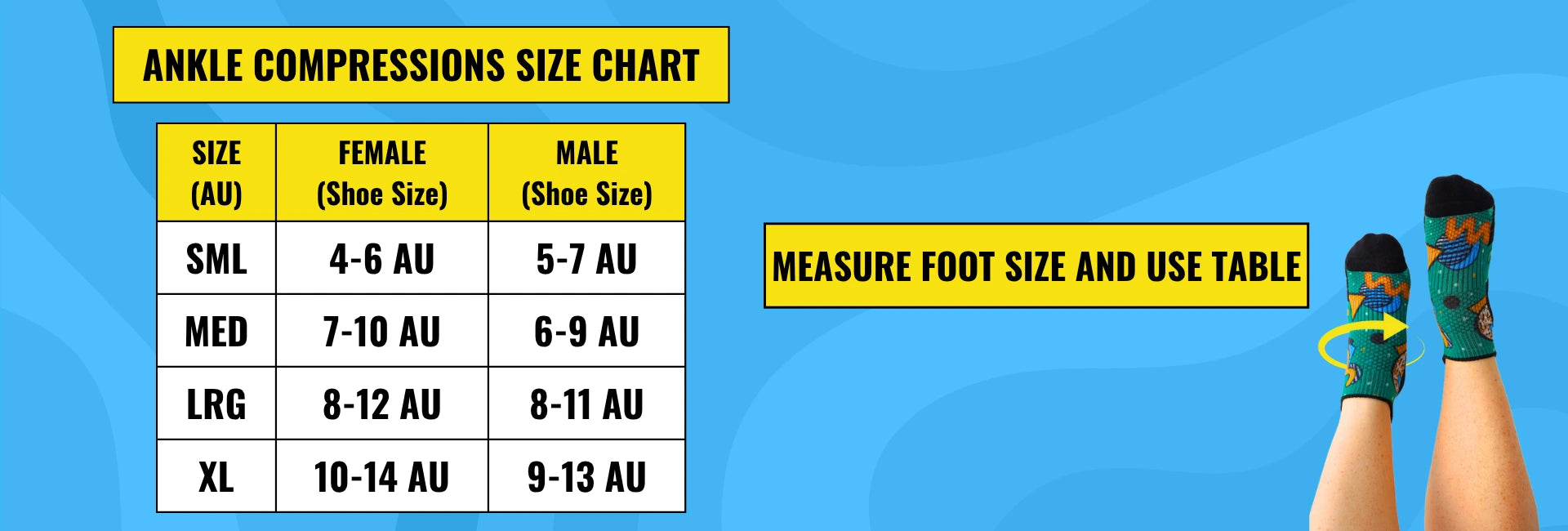 *8 MYSTERY ANKLE COMPRESSION SOCKS ARE FROM OUR ANKLE COMPRESSION SOCK RANGE - THEY CANNOT BE REFUNDED OR EXCHANGED. THESE SOCKS ARE RANDOMLY PICKED BY THE STAFF MEMBER ON THE DAY. PLEASE SEE OUR TERMS AND CONDITIONS FOR MORE INFORMATION....