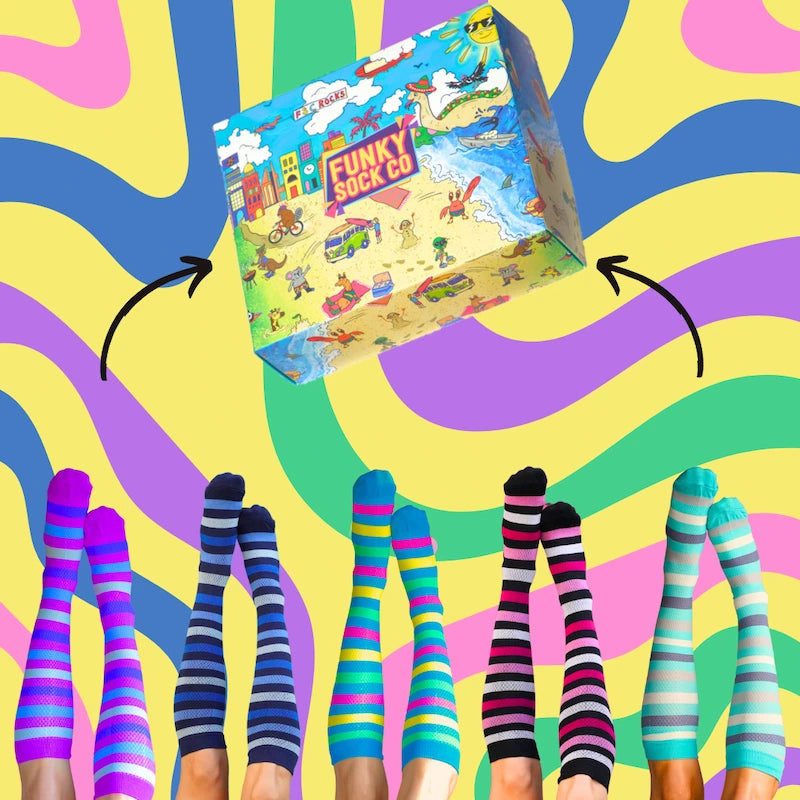 Funky Sock Co Compression Socks are designed for comfort and ease. Featuring two different graduated compression ranges - Classic (20-30mmHg) and Bamboo (12-15mmHg) with sizing up to 7XL in our Classic Range. Our socks provide reliable support to keep your legs feeling energized and comfortable all day.