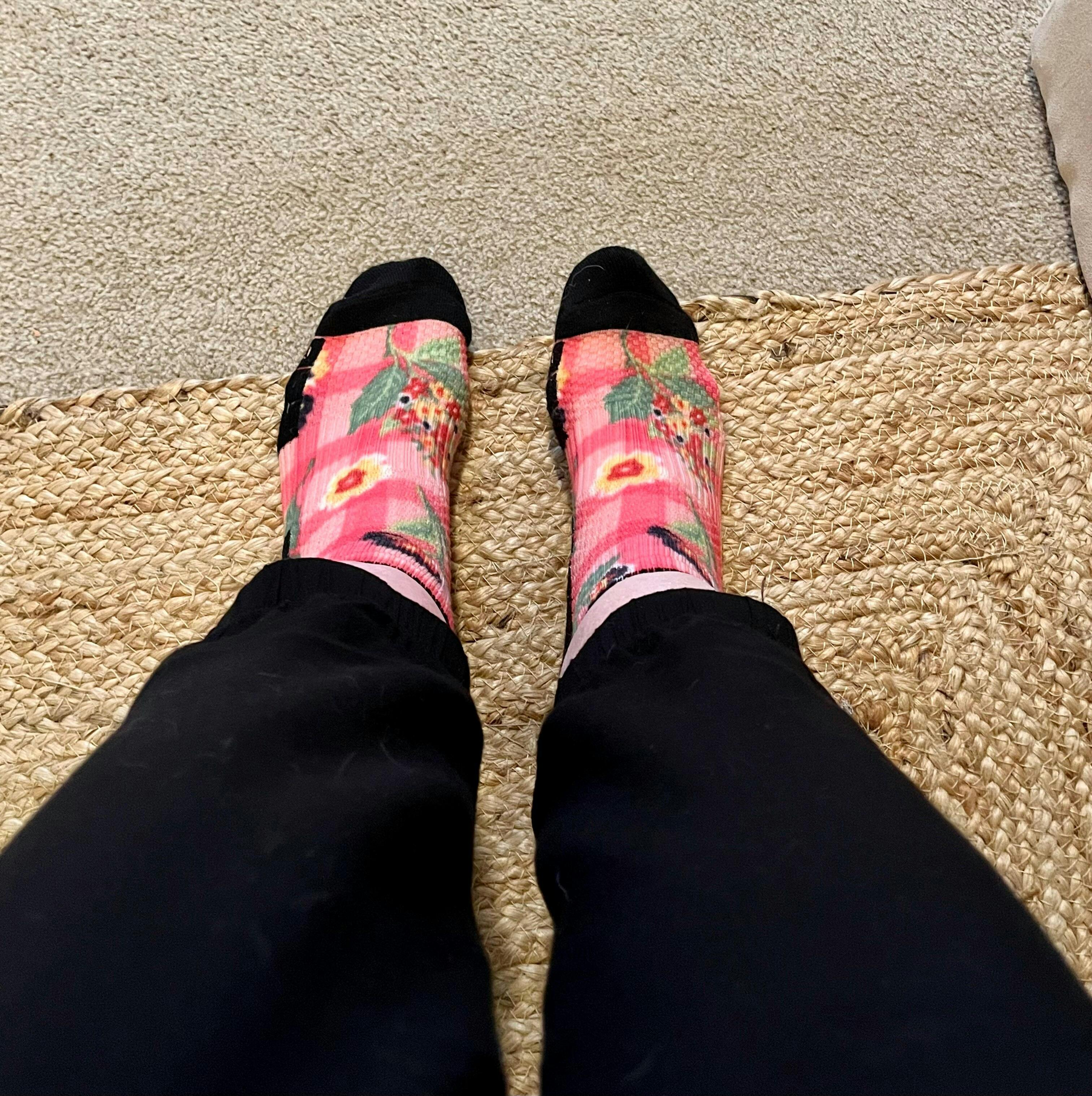 These are the socks I wear while I’m working. My feet don’t hurt as much anymore. Plus the prints are fantastic