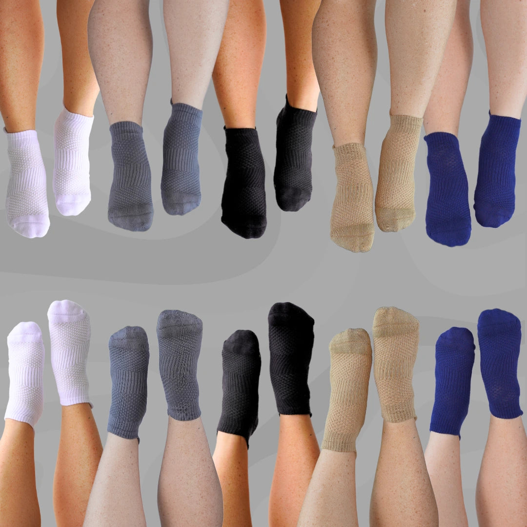 Ankle Compression socks promote healthy circulation by providing targeted compression which reduces the risk of swelling throughout the foot and ankle, keeping your feet energized and light all day.