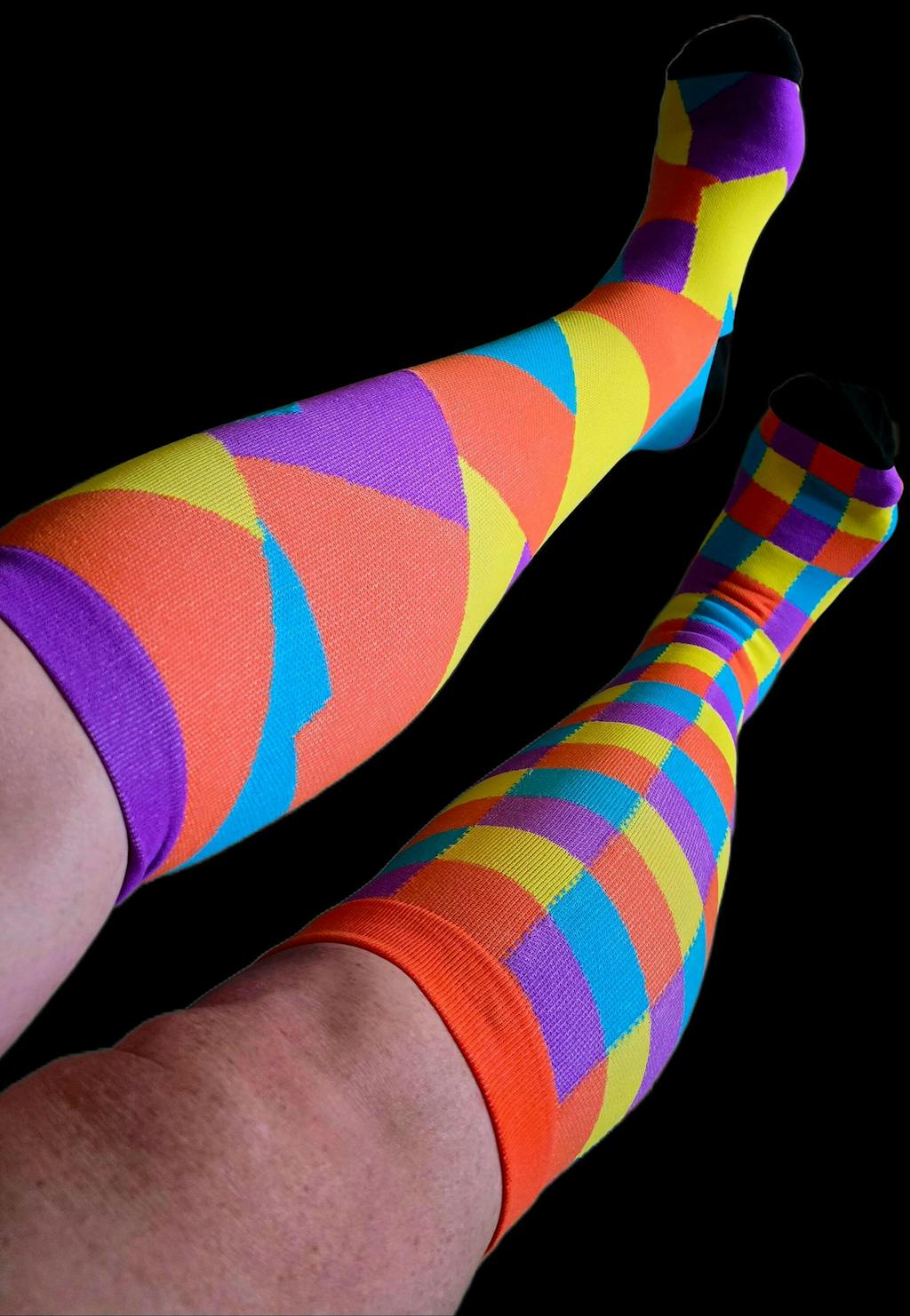 Funky Sock Co Compression Socks are designed for comfort and ease. Featuring two different graduated compression ranges - Classic (20-30mmHg) and Bamboo (12-15mmHg) with sizing up to 7XL in our Classic Range. Our socks provide reliable support to keep your legs feeling energized and comfortable all day.