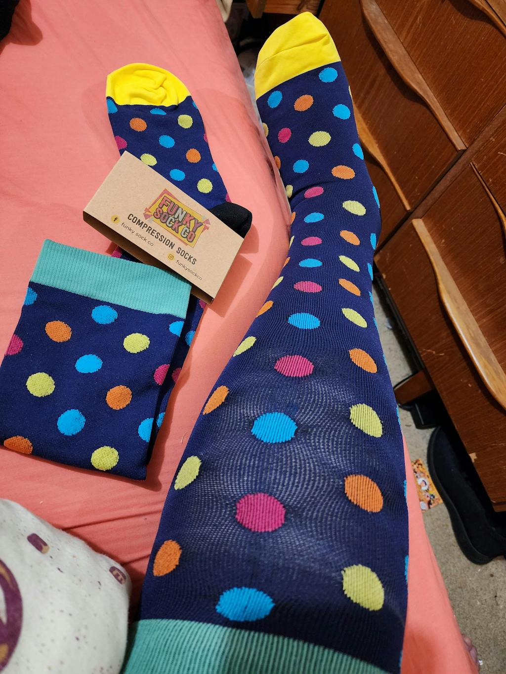Funky Sock Co Compression Socks are designed for comfort and ease. Featuring two different graduated compression ranges - Classic (20-30mmHg) and Bamboo (12-15mmHg) with sizing up to 7XL in our Classic Range. Our socks provide reliable support to keep your legs feeling energized and comfortable all day.